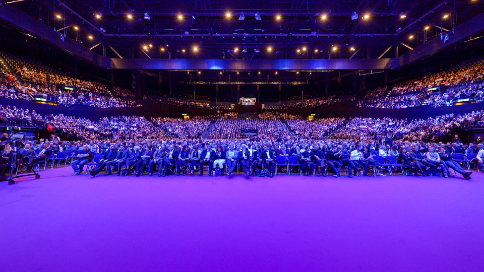 So sieht es aus, wenn man das riesige Hallenstadion in Zuerich in einen Kinosaal verwandelt.